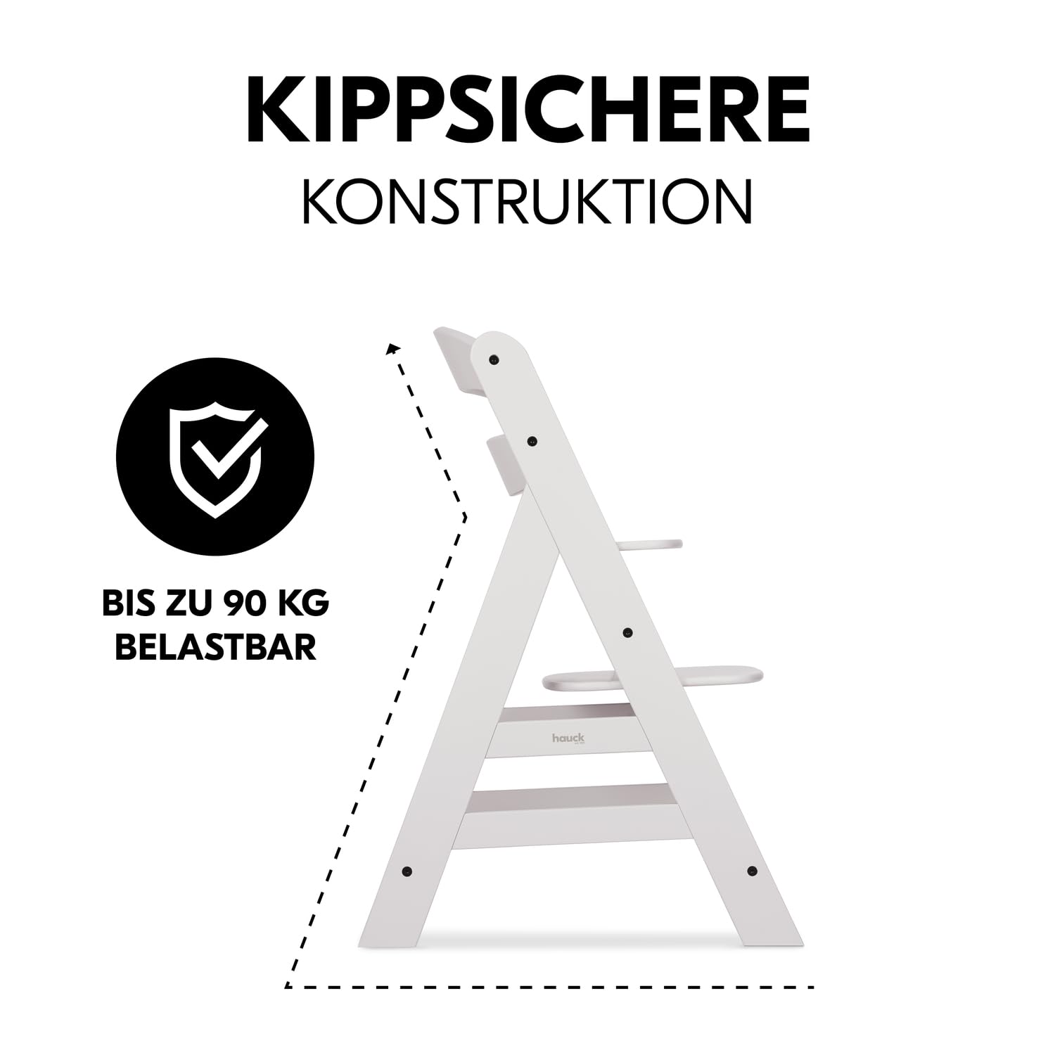 Für den Einsatz im privaten Haushalt ist der Hochstuhl mit einem Schutzbügel, einem 5-Punkt-Gurtsystem sowie einem Schrittgurt ausgestattet. Die stabile Holzkonstruktion sorgt für einen sicheren Stand bei sachgemäßer Nutzung.