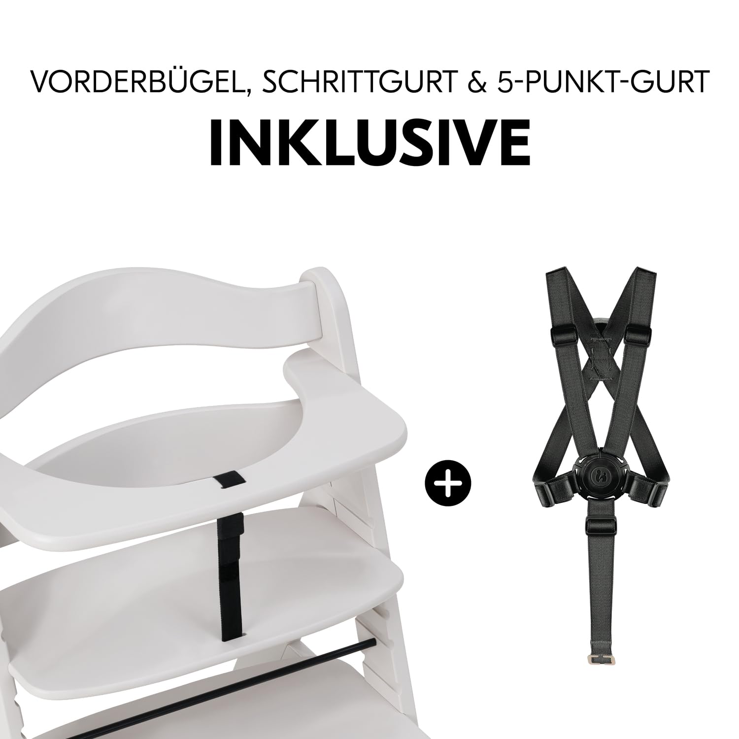 Mitwachsender Holzhochstuhl aus Buche – mit Schutzbügel, 5-Punkt-Gurt & Schrittgurt, bis 90 kg belastbar (Creme)